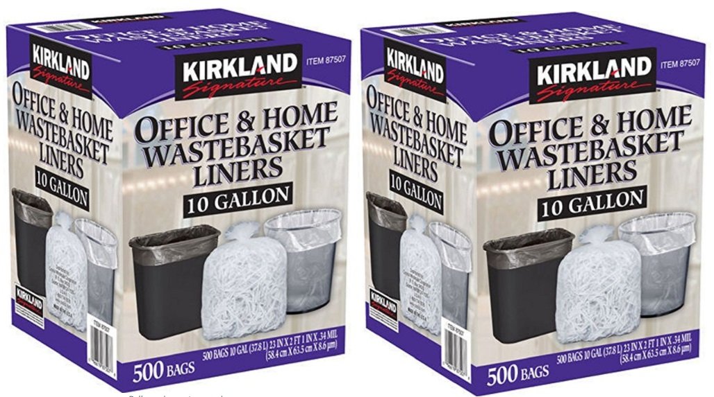 Kirkland Signature Made in USA 10 Gallon Clear Wastebasket Liner Bags for Trash Can 500 Count (2 Pack)