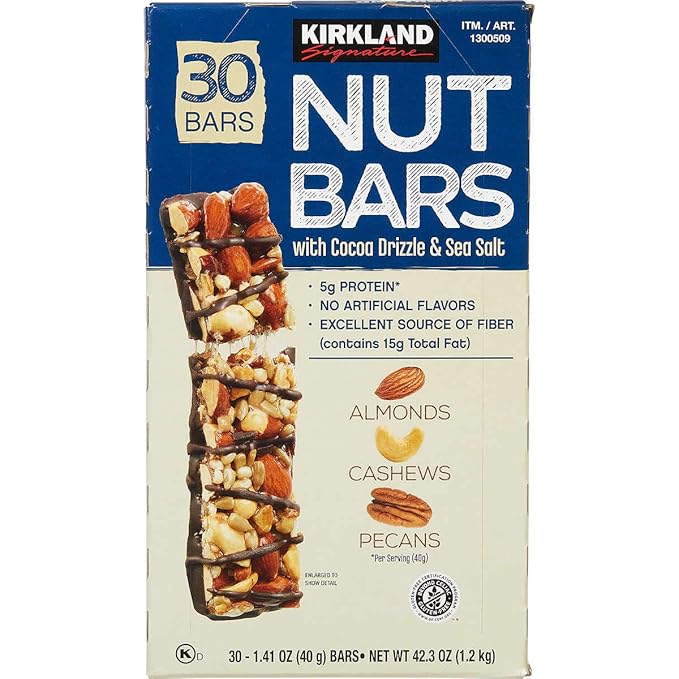 - Includes: Kirkland Signature Nut bars 1.4 oz, 30-count