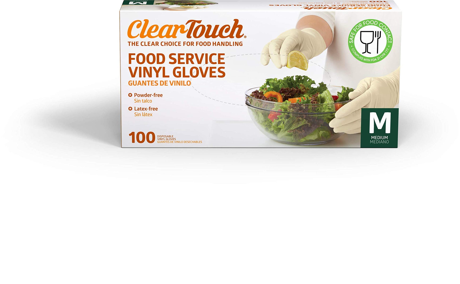 Details: Medline clear-touch disposable industrial vinyl glove is approved for food handling and contact. Ideal use when frequent glove changes are needed. Offset cuff allows for easy donning. Latex-free and powder free white gloves. Complies with FDA 21 CFR 177